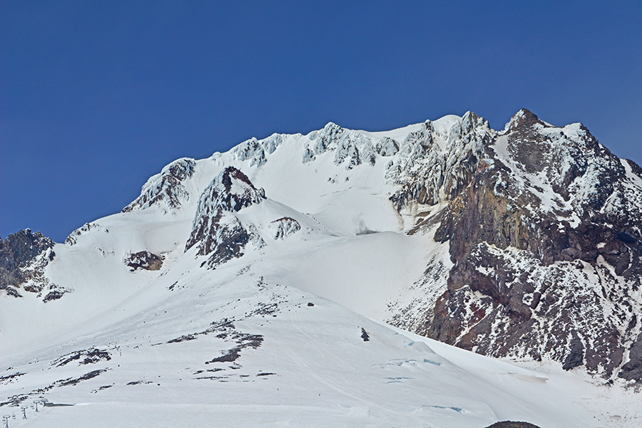 Zooming into top of Mt Hood, where you can see the climbers